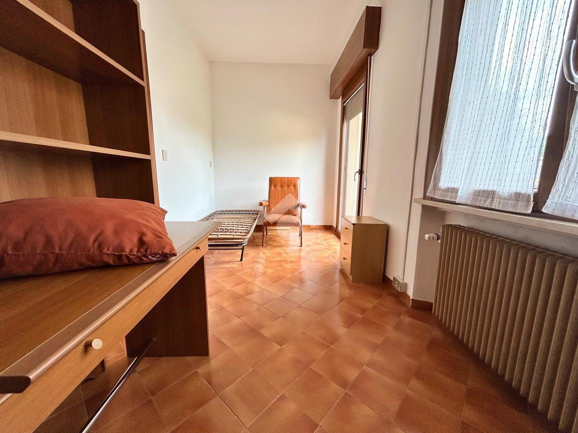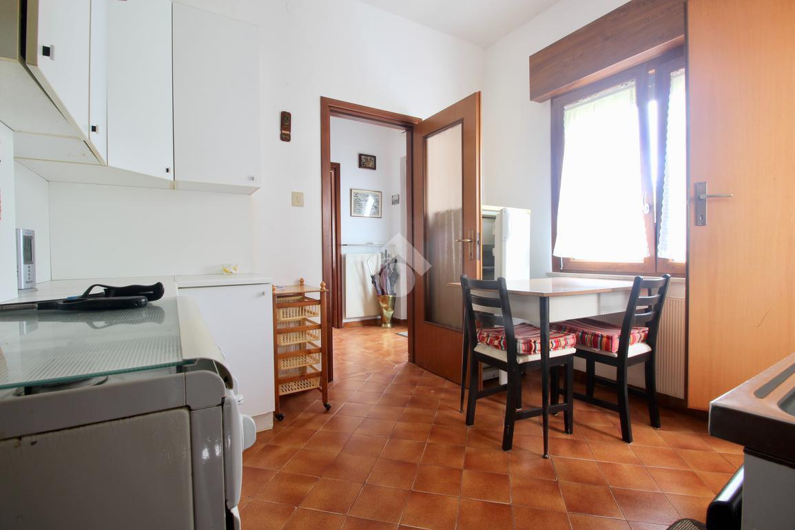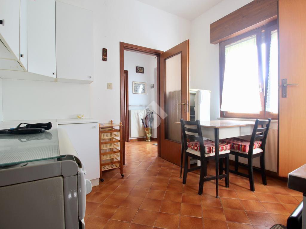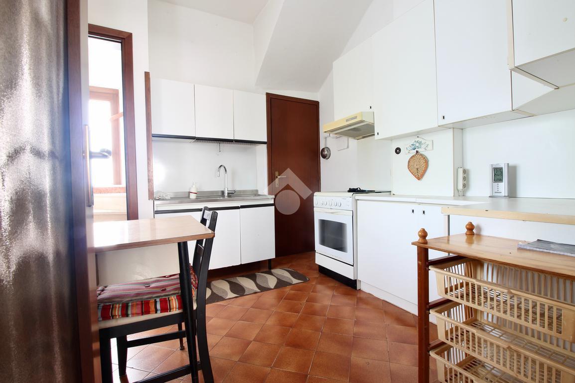 Dall'ingresso si ha accesso a un corridoio che collega un luminoso soggiorno, una cucina abitabile dalla quale si raggiunge una cantina, un bagno finestrato con box doccia e una camera utilizzabile per ogni esigenza.